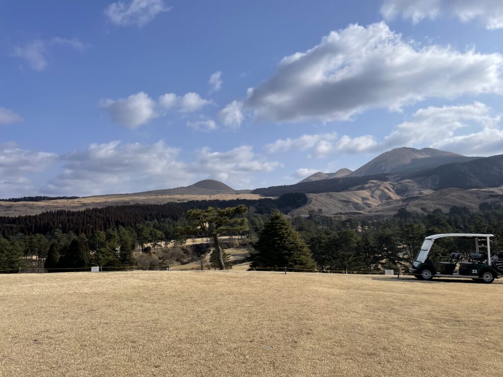スタートホールから見える阿蘇の景色は開放感があり、気分が一気に上がります。